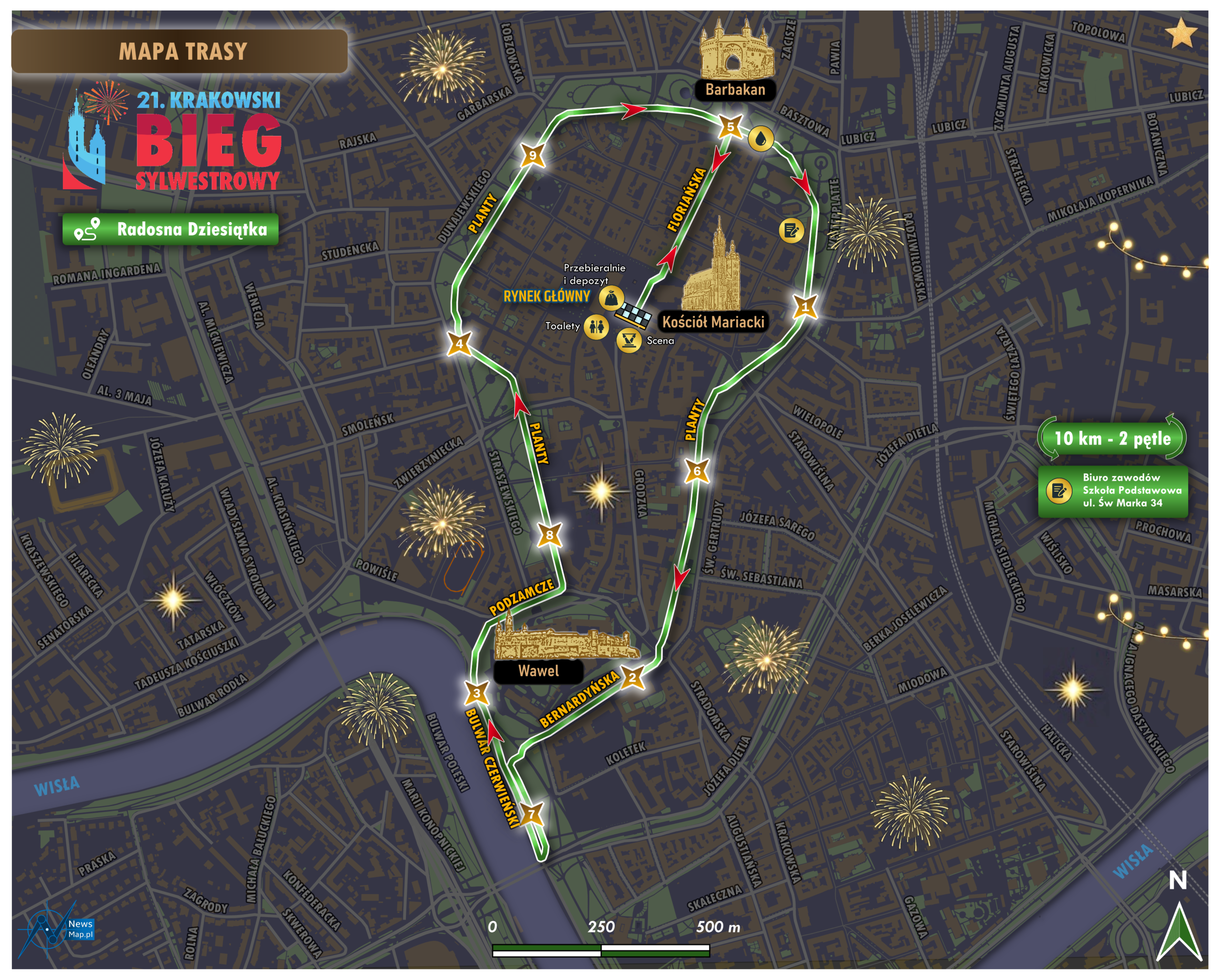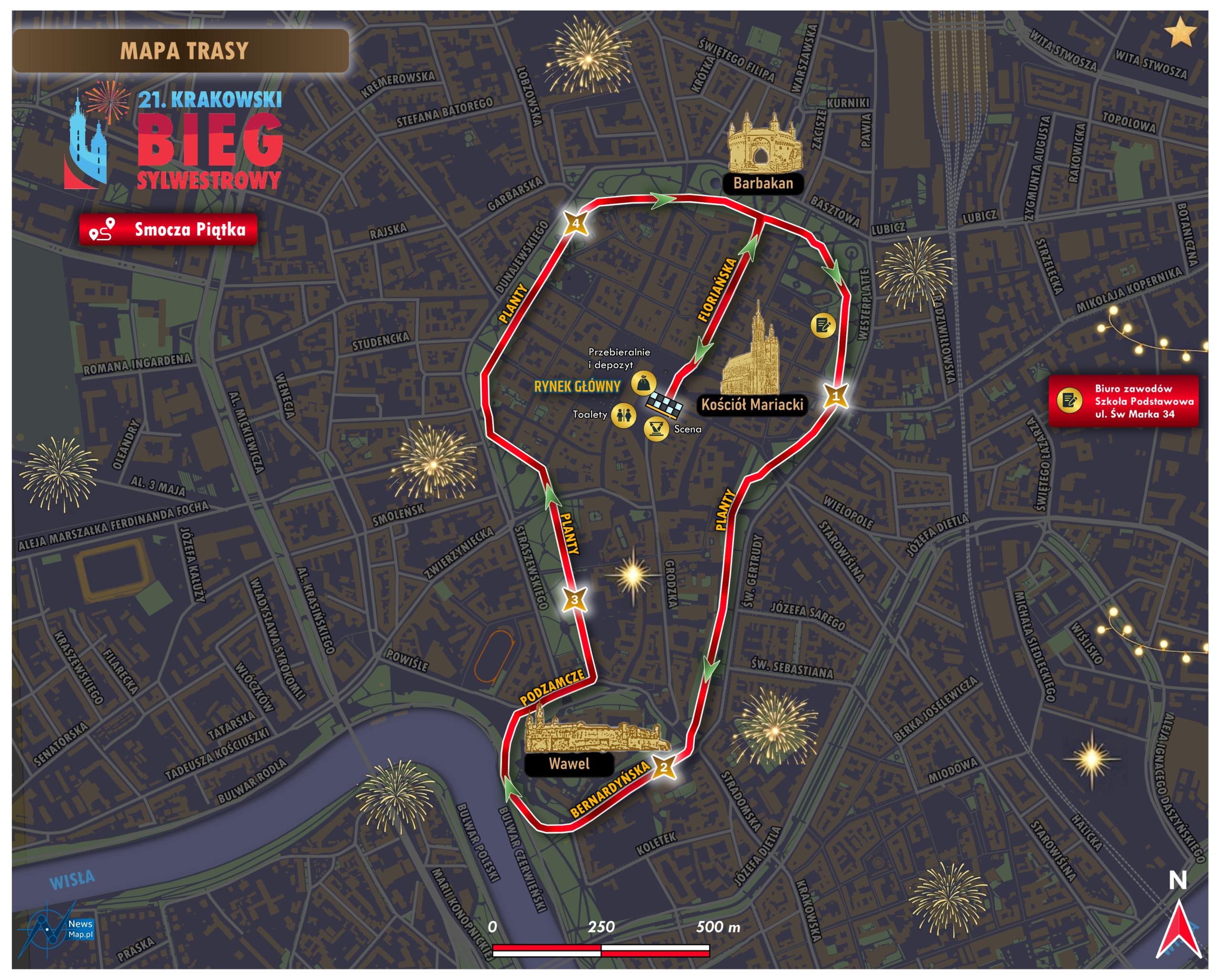 👉 Start obydwu biegów: Rynek Główny w okolicy ulicy Siennej, 31.12.2025 godz. 12:00.